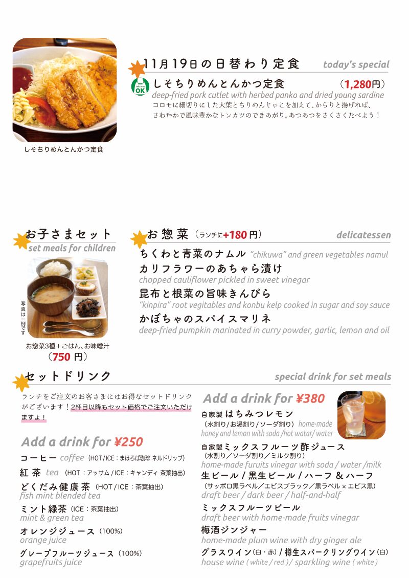 さてさてからりといいお天気で東京三鷹は風がぐっと冷たくなりましたねぇと当店定休日明けの水曜日…って、実は先週末とこの定休日、スタッフ募集はふたりの面接をしたりしつつ、お昼時はすみやかに新パダワン登場!今日のお昼ごはんにお持ち帰り日替わりですよ。