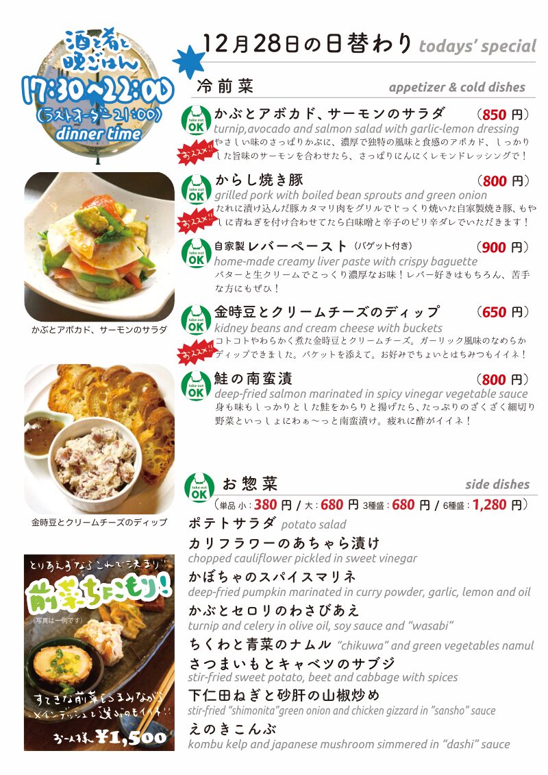 しかし今夜はワタクシもこうしてブログを書いている余裕がないくらい、早い時間からのお客さんラッシュは…やパリみなさん今年の仕事を納められて、心おきなくお酒にお食事にと楽しめるんでしょうね〜と…そういや今日のお昼はランチタイムも、この寒い季節にもかかわらずかなりたくさんのビールや梅酒ジンジャー、そしてワインなんかのお酒の注文をいただきましたし、とあるお一人女性のお客さんはレジのところで…トリカラちょこもりと生ビールでしたね〜って..アレ?コレ昨夜深夜ワタクシがSNSで今日のランチおススメ!ってアップしたまさにそのチョイスですね!なんてお声がけしますと…そうなんですよ、