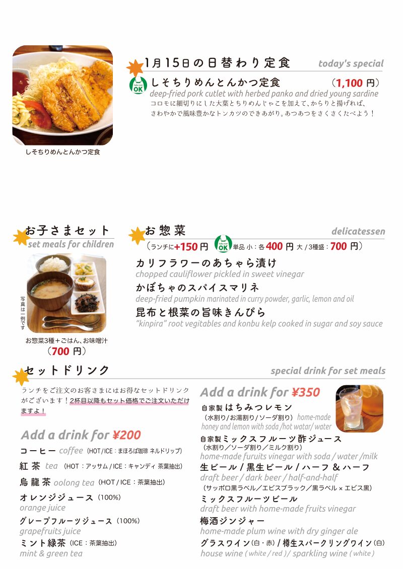 さてさて気持ちのいいお天気で東京三鷹、当店的には定休日明けの水曜日!って、ワタクシドモオーナー夫婦はこの定休日、年末年始に出来なかったいつも通りのお休みをしっかり取れて、ようやく今年も本調子っ!?(笑)…今日のお昼ごはんにお持ち帰り日替わりですよ