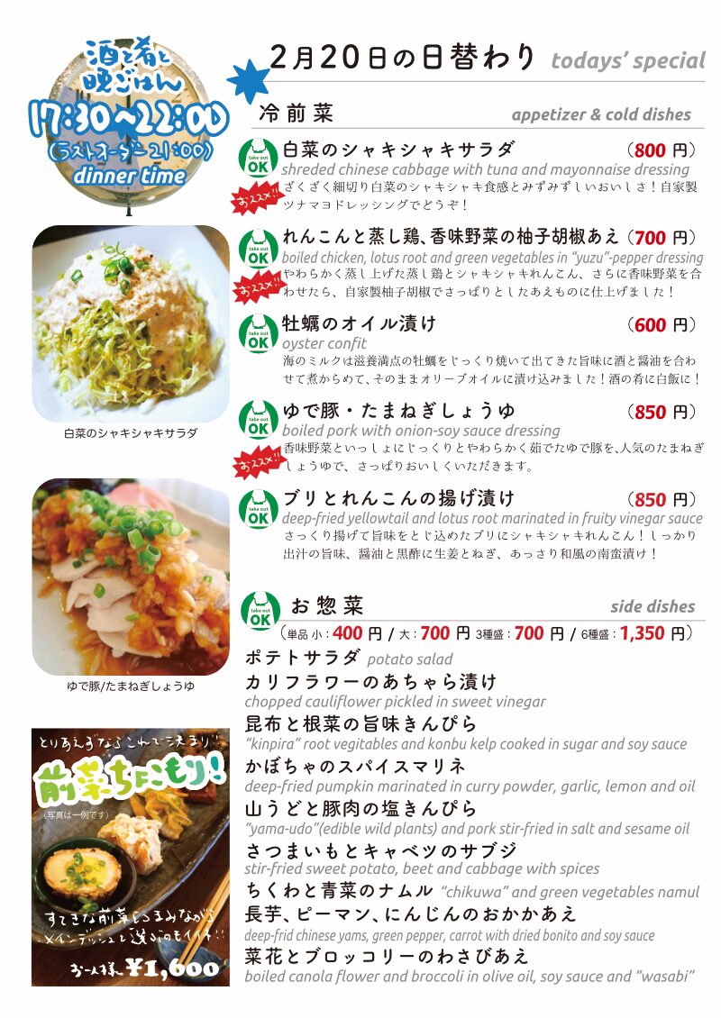 今夜もおいしいごはんは日替わりに、もちろんお持ち帰りも!