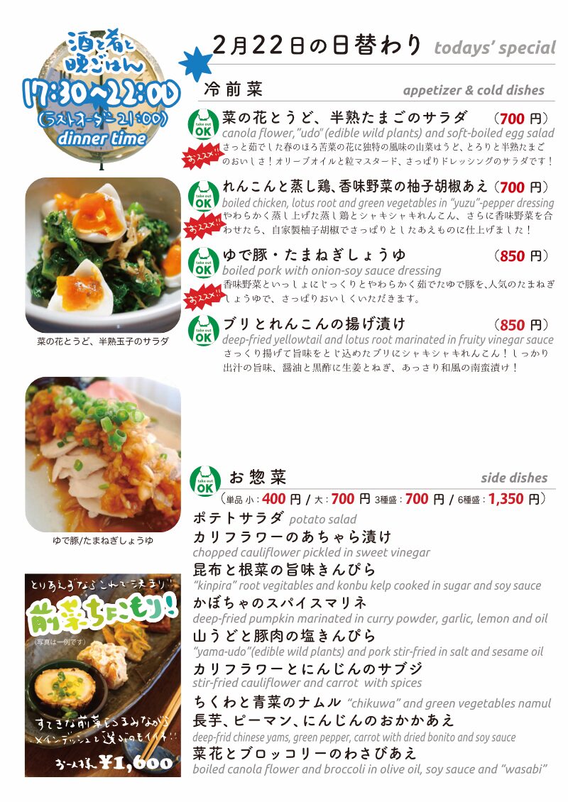 今夜もおいしいごはんは日替わりに、もちろんお持ち帰りも!