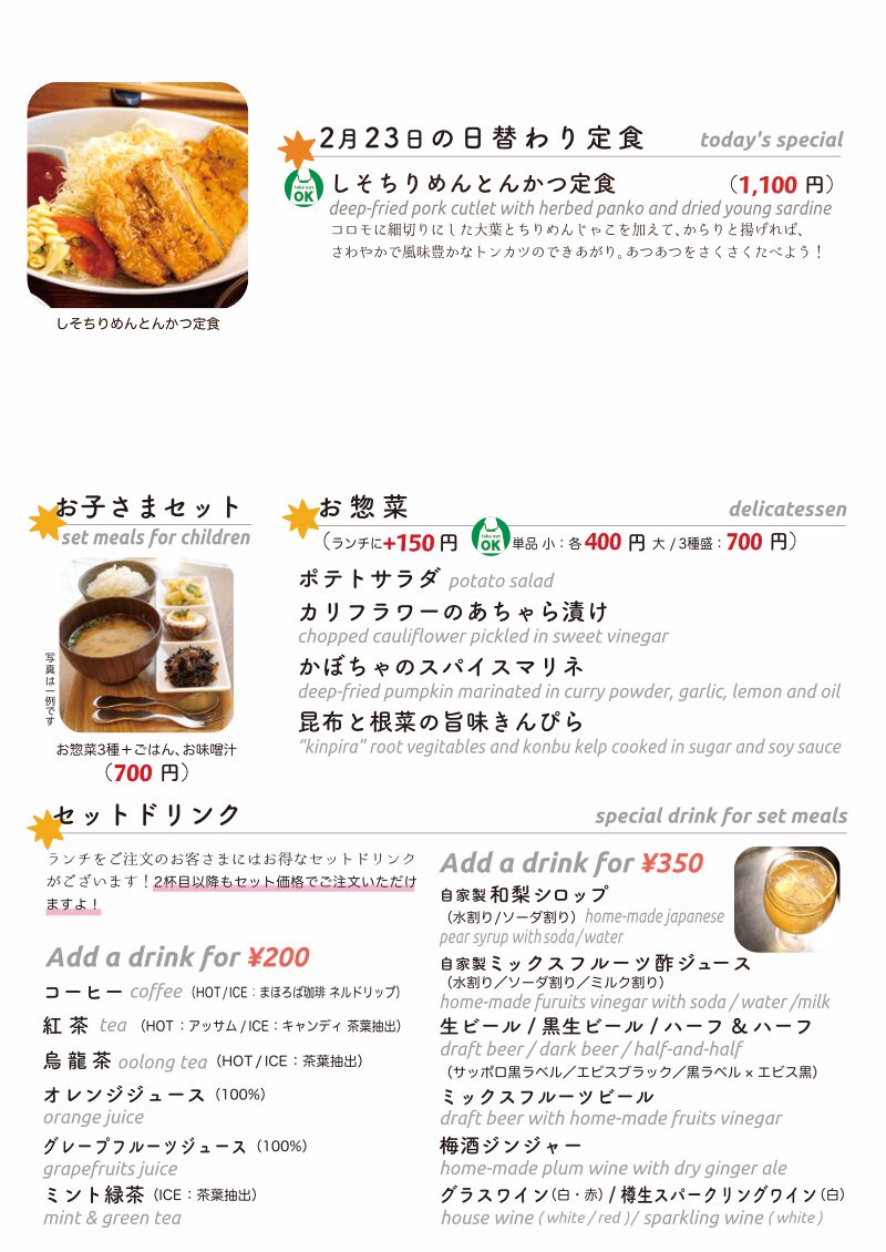 今日のお昼ごはんにお持ち帰り日替わりですよ