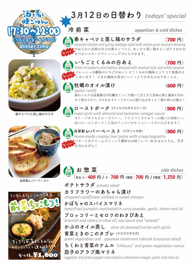 今夜もおいしいごはんは日替わりに、もちろんお持ち帰りも!