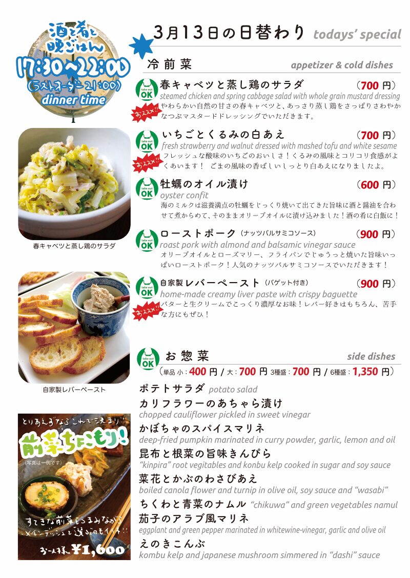 今夜もおいしいごはんは日替わりに、もちろんお持ち帰りも!