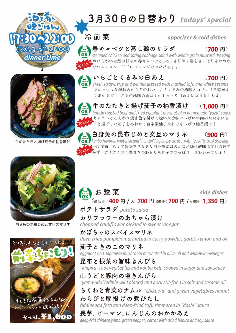 さてさて気温はさほど上がらねど、なんだかんだでいいお天気はこの春一番?絶好のお花見日和でしたね〜と東京三鷹、当店お昼時も開店からすぐさま満席御礼!から…結局ラストオーダーまでそのまま満席ペースで走り抜け…いや、ワタクシドリンカーと片付け担当ですけど、もう洗いものが運んでも運んでも洗っても洗っても裏の一時置き用のラックがあっと言う間に埋まってしまって…フル回転でやっても追いつかない…って、それもそのはず、
