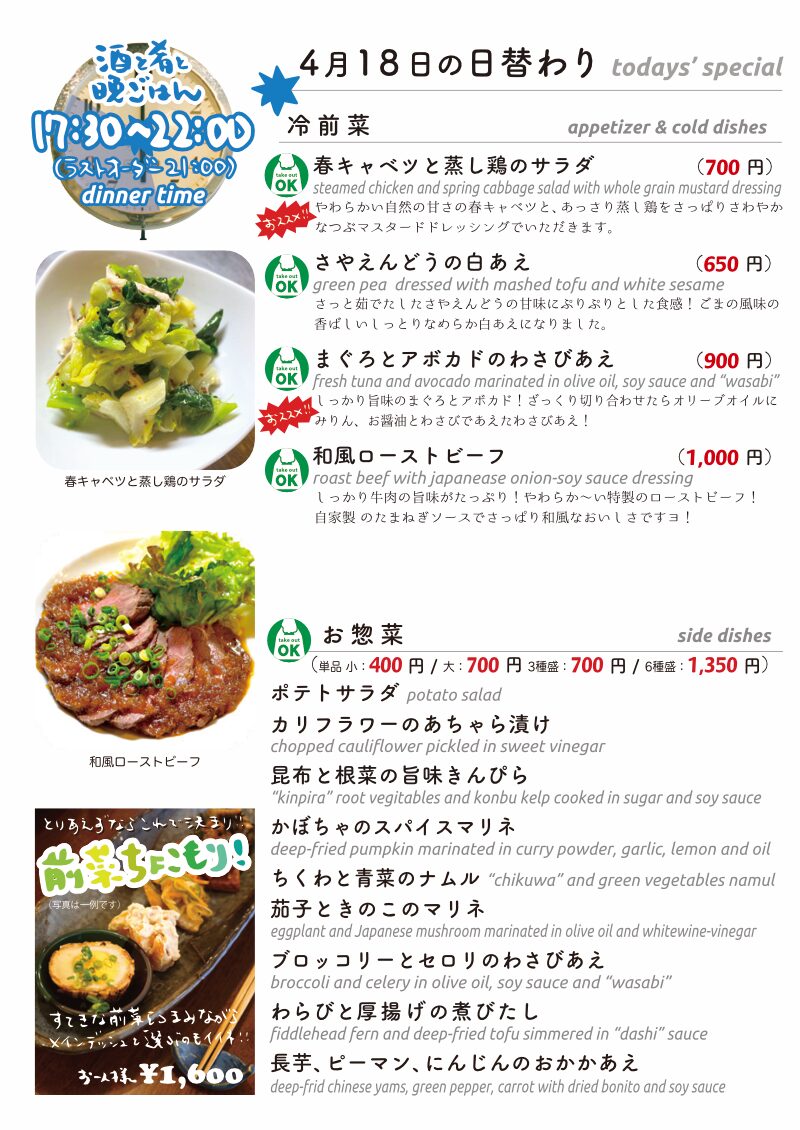 今夜もおいしいごはんは日替わりに、もちろんお持ち帰りも!