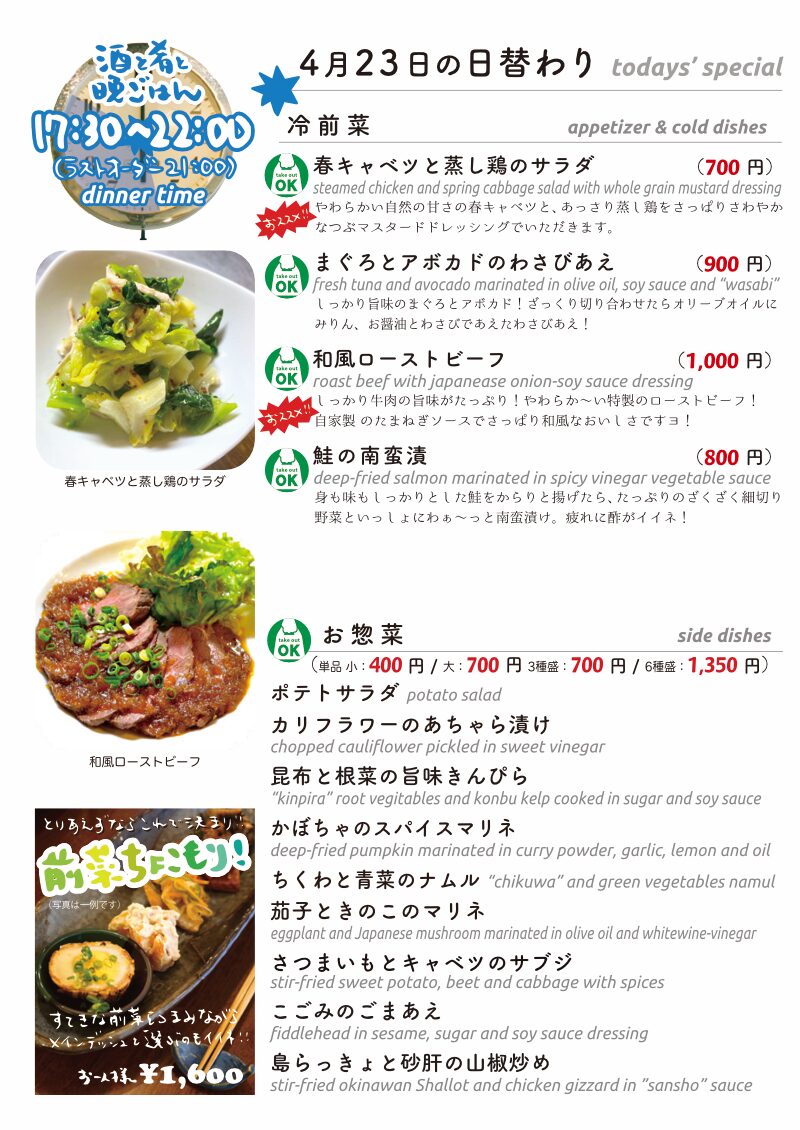 今夜もおいしいごはんは日替わりに、もちろんお持ち帰りも!