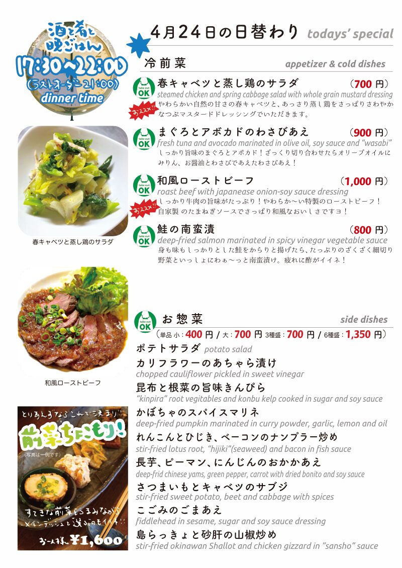 今夜もおいしいごはんは日替わりに、もちろんお持ち帰りも!