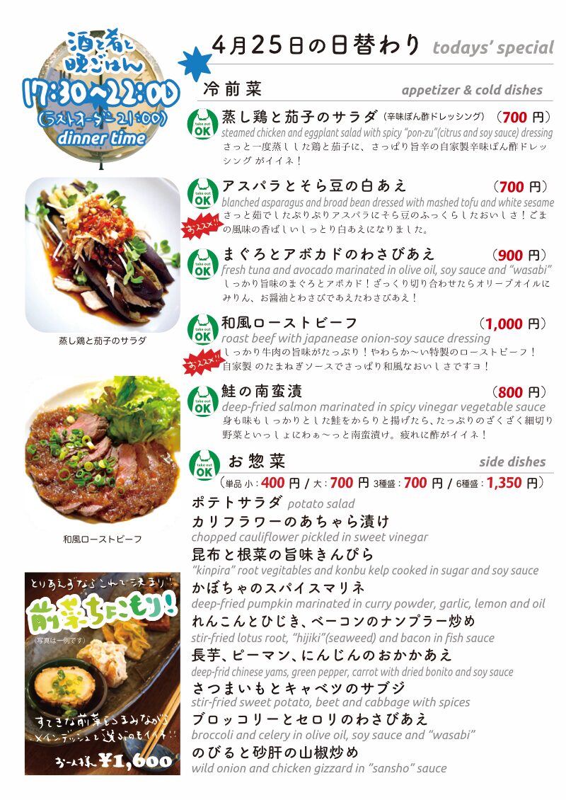 さてさて終日曇り空の東京三鷹…って、いや、でも今日はお給料日って方も多いでしょうから、つまりアレです花金の夜!しかも明日からGWスタート!?バッチリ休みを取って11連休!って方もいらっしゃるんでしょうけど…ま、でもわりとカレンダー通りだよ〜って方の方が多いような…ま、いずれにしましても今週もお疲れさまでしたの金曜日!いや、当店午後は先にSNSでもお知らせしましたが、なんやかんやで今夜はご予約多数…只今ご案内出来るお席は…
