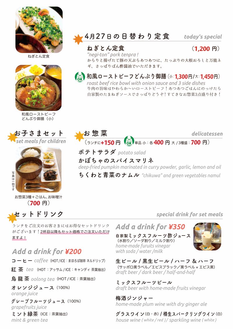 というわけで、明日明後日定休日明け、いよいよ本番GWの来週は…月火の定休日も返上でGW最終日の6日(火・振替休日)まで7日間のぶっ続け営業でこの春のたけのこシーズンもグランドフィナーレ!…GW明けは7日から母の日の週末に翌週定休日も含めて翌火曜日13日まですっかりGW振替休日をいただきますよとか引き続きお知らせもしつつ、すかっとお昼時は開店からわっとお客さんご来店でなんやかんやですでに一回満席日曜日(アリガトウゴザイマス)。