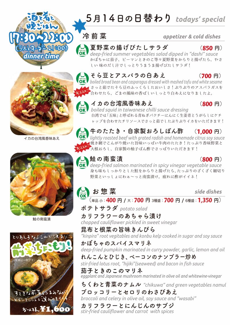 と、そんな当店GW振替休業明けの今週…夜のメニューは