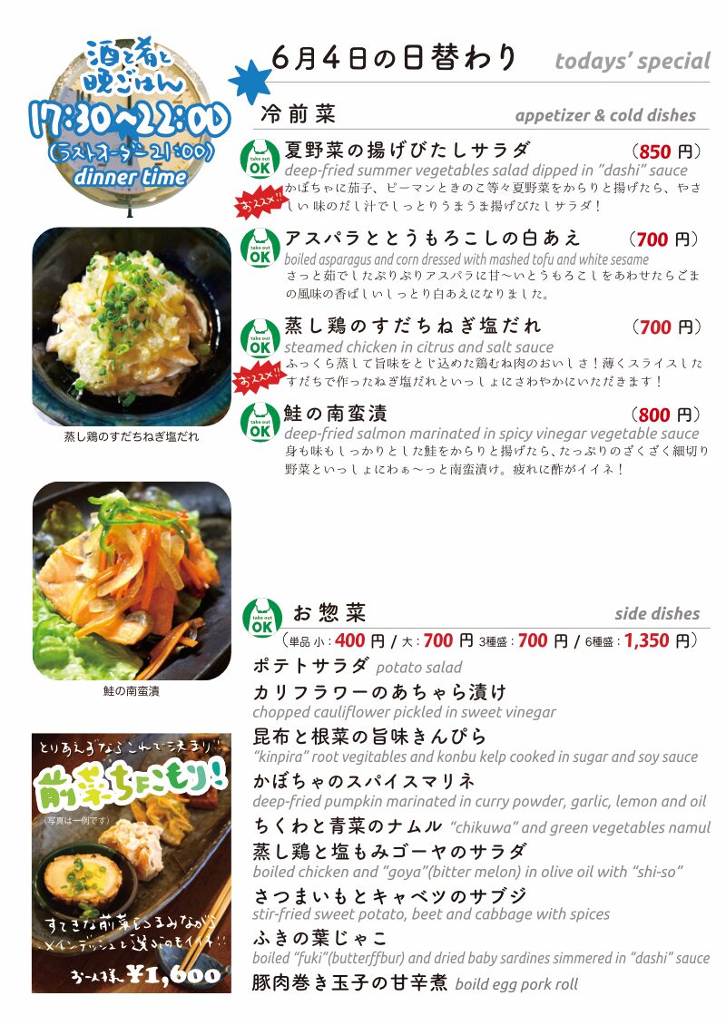 今夜もおいしいごはんは日替わりに、もちろんお持ち帰りも!