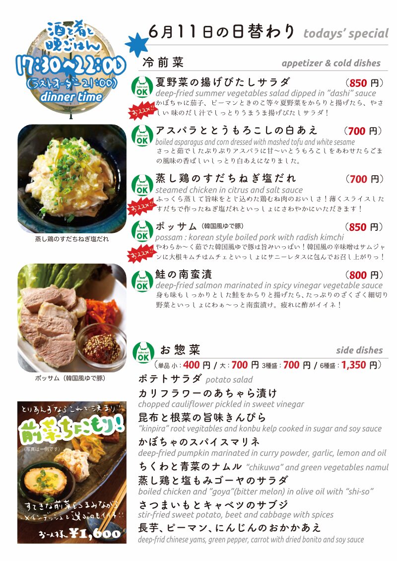 今夜のおいしいごはんならびに日替わりメニューでした!(重ね重ねモウシワケナイ)