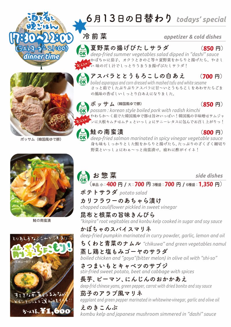 今夜もおいしいごはんは日替わりに、もちろんお持ち帰りも!