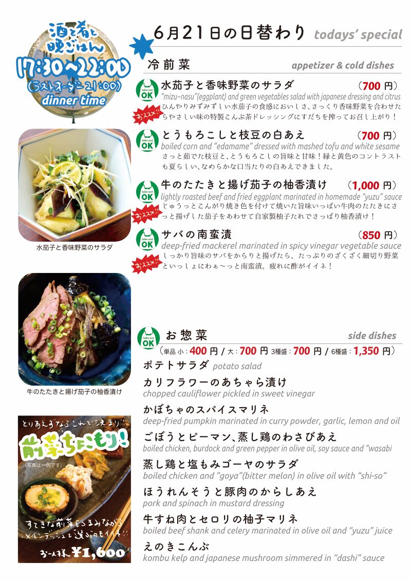 いやいや夏空続いて東京三鷹は本日夏至です土曜日の夜!…って、只今当店満席御礼でご来店ならちょっと遅めのお時間、念のためお電話してからが吉です!(毎度スミマセン)今夜の日替わりにお持ち帰りも。