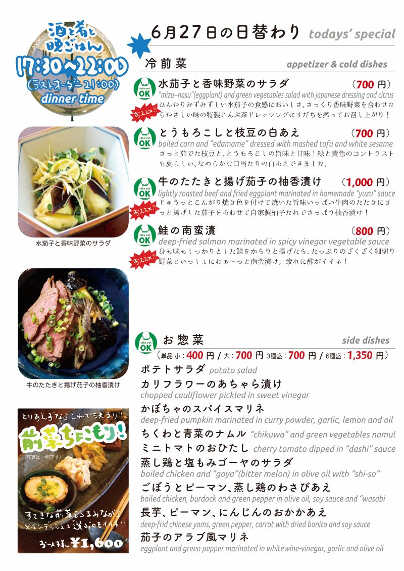 いや今日もなんだかんだで暑かったですねぇと週末直前金曜日の夜!…と、今夜はのんびりですよ〜と引き続き大きな声でお知らせもしつつ(苦笑)、昨日お昼時は元大学生スタッフのおシゲちゃんもご来店!今夜もおいしいごはんは日替わりに、もちろんお持ち帰りも!
