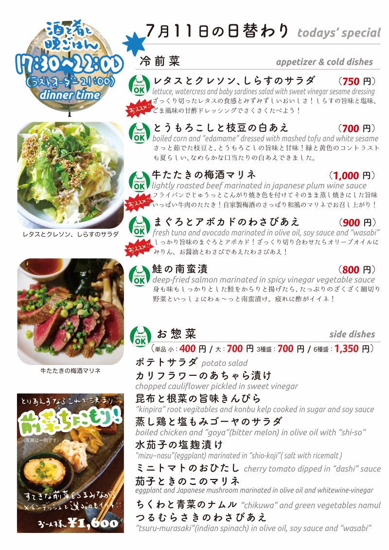 今夜もおいしいごはんは日替わりに、もちろんお持ち帰りも!