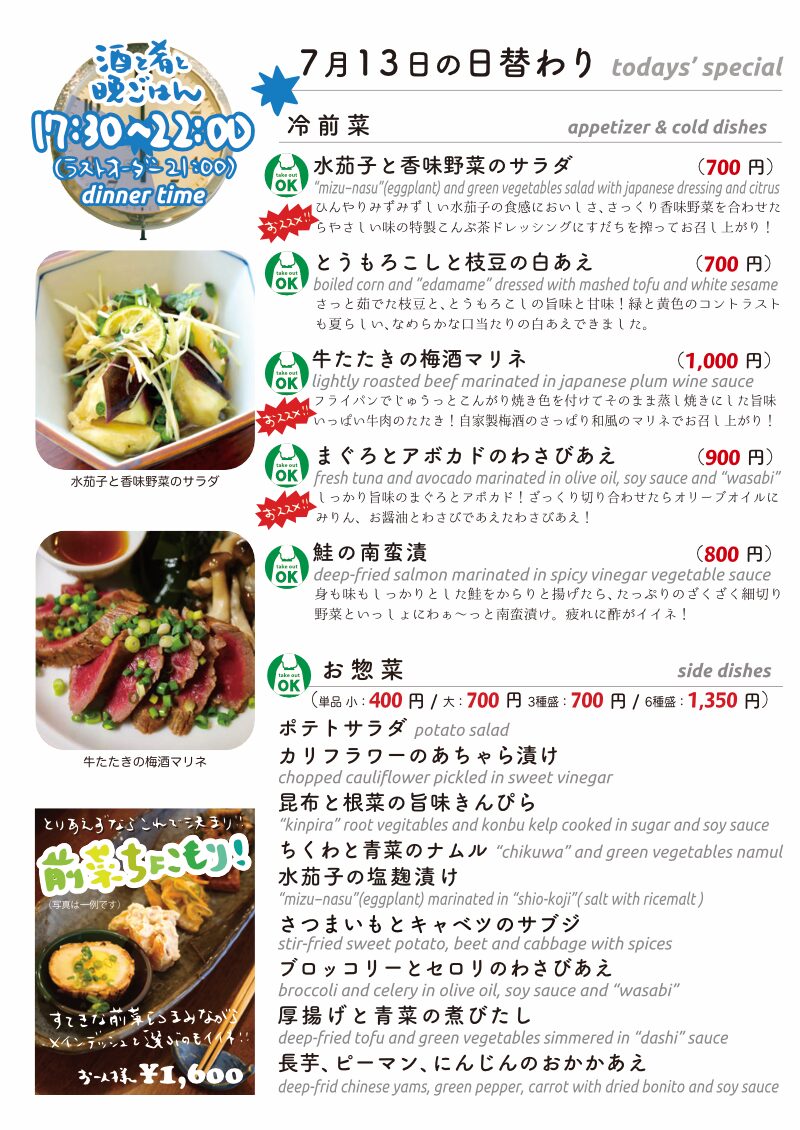 今夜もおいしいごはんは日替わりに、もちろんお持ち帰りも!