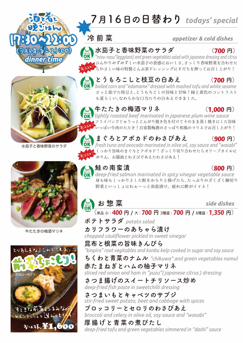 今夜もおいしいごはんは日替わりに、もちろんお持ち帰りも!