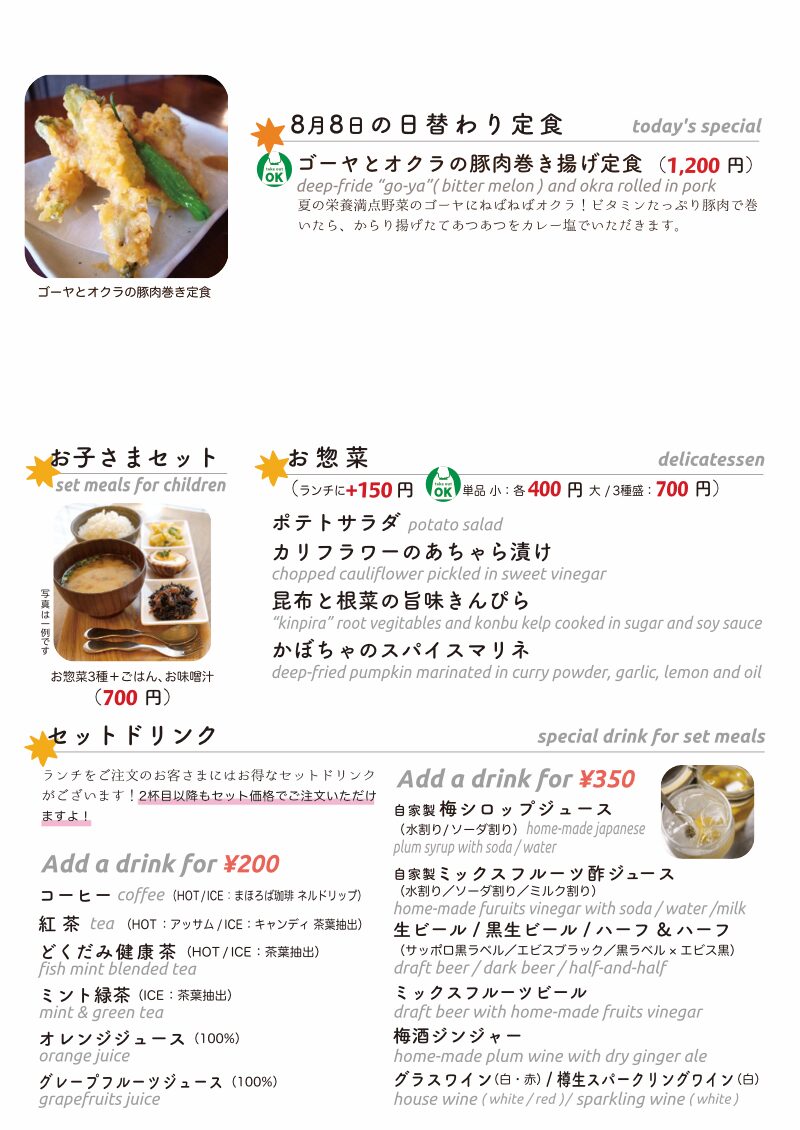 あー、今日もギラギラ太陽が完全勝負で東京三鷹、明日からの山の日の3連休直前!は今週末の当店夜のご予約状況もお知らせしつつ…しかしなにげに来週いっぱい長〜い?お盆休みの方もいらっしゃるでしょうね〜と…今日のお昼ごはんにお持ち帰り日替わりですよ。