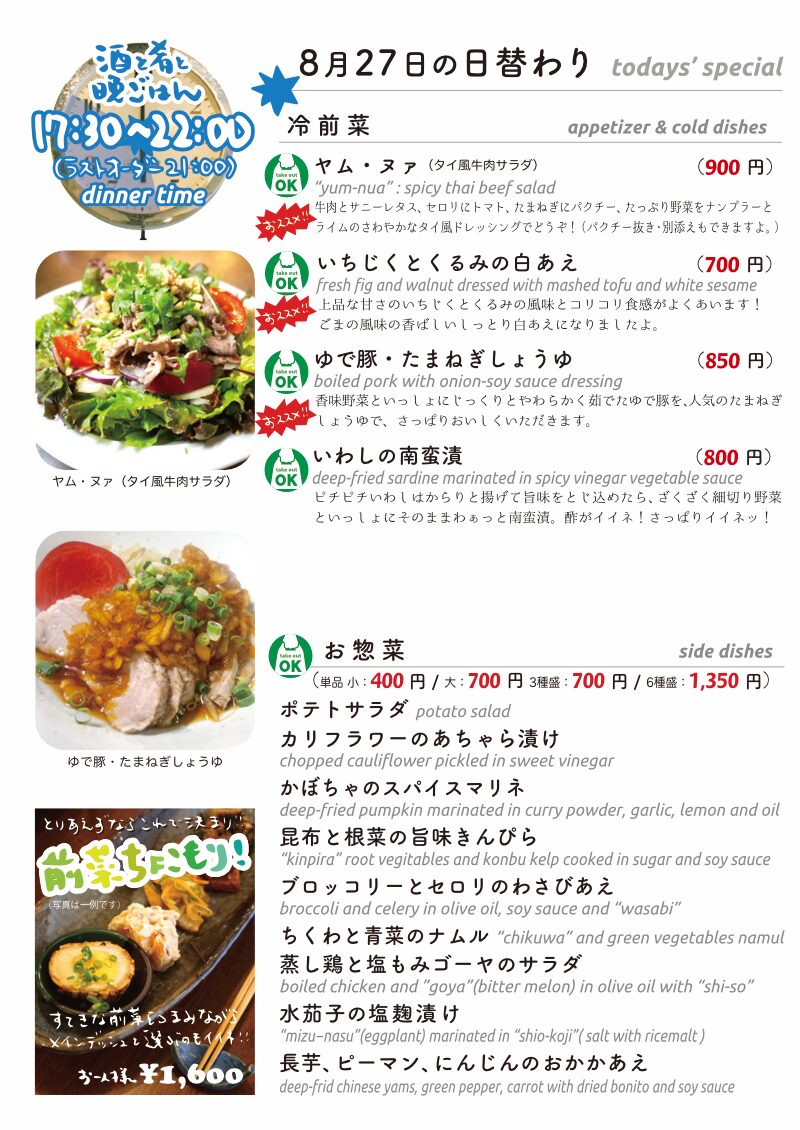 いやいや東京三鷹はざざっとゲリラ雷雨とか来ちゃうのか?!と思われましたが…ちょっと雷が鳴るくらいで雨は降らなかったも様ですねと水曜日の夜…いや、すでにラストオーダー15分前、遅ればせながらこうしてブログを更新しておりますのは…つまりちょっとしたお知らせがありますよというか…