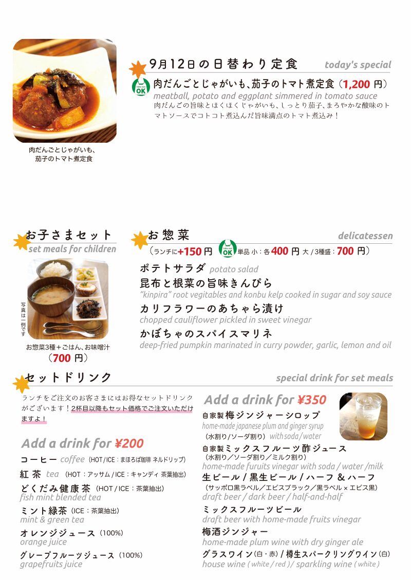 さてとすっかり曇り空でこのくらいだとホントに身体が楽でいいですよね〜と今週も早金曜日(笑)…と、なにげに今週末は敬老の日の3連休!三鷹は八幡様のお祭りですよと、さてと今夜の当店ご予約状況はと申しますと…今日のお昼ごはんにお持ち帰り日替わりですよ。