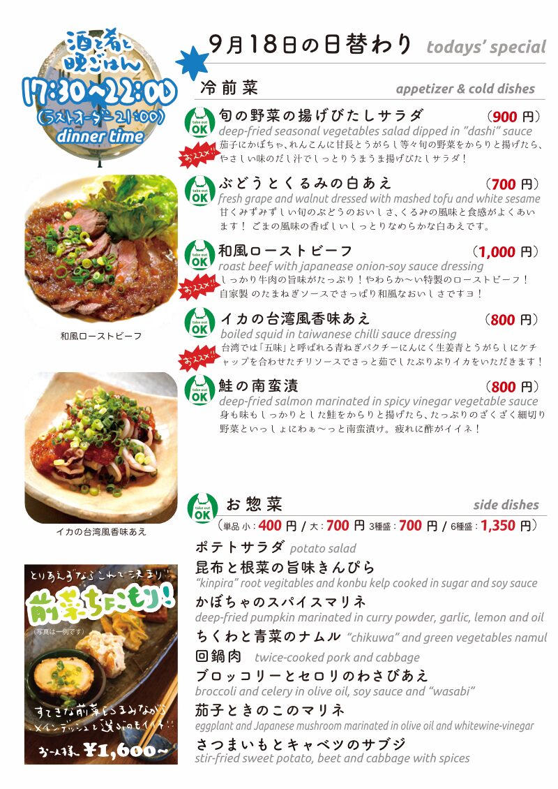 今夜もおいしいごはんは日替わりに、もちろんお持ち帰りも!