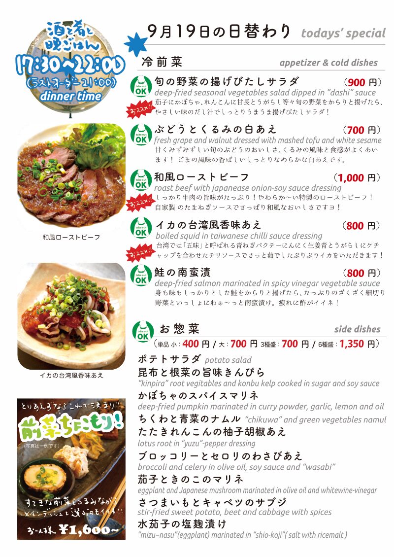 今夜もおいしいごはんは日替わりに、もちろんお持ち帰りも!