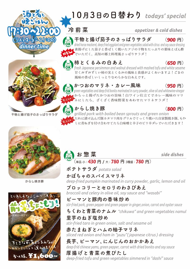今夜もおいしいごはんは日替わりに、もちろんお持ち帰りも!