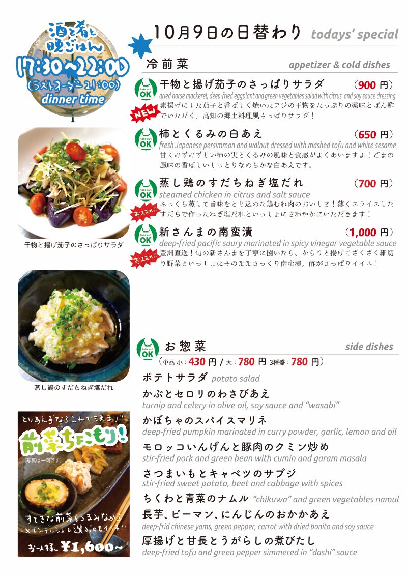今夜もおいしいごはんは日替わりに、もちろんお持ち帰りも!