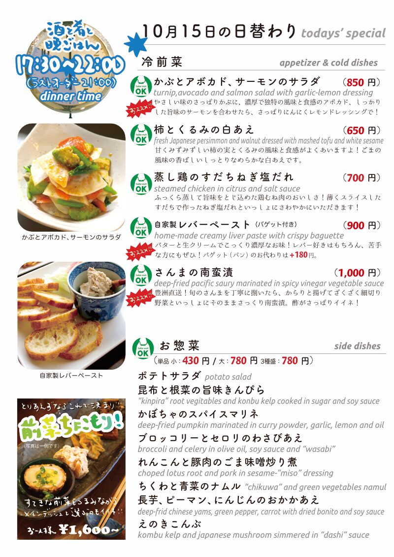 今夜もおいしいごはんは日替わりに、もちろんお持ち帰りも!