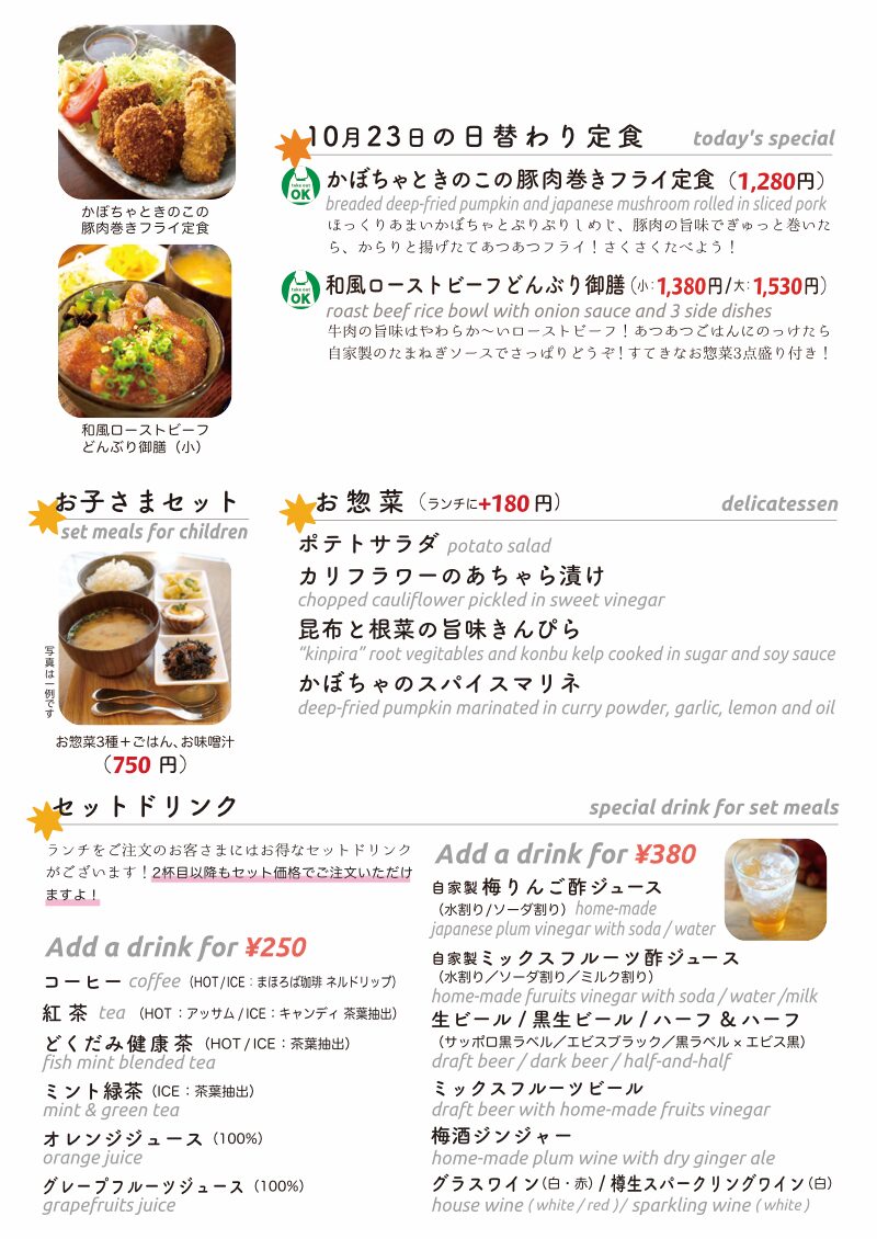 とうわけで、もうこうなったら次の定休日にババンと羽毛布団を干してから!ってのは諦めて(いや天気がよければもちろん干すつもりですけど)、今夜帰宅したら布団乾燥機をばばーっとかけて夏の湿気を取ったら、もう寒さの心配もすることなく、すっかりココロおきなくぐっすり寝よう!と(笑…ちなみに明日の朝の気温は1℃下がって10℃予報)、えぇ、今日はそれをひとつのご褒美に一日がんばるぞっ!なんて思いつつ、まぁ、でも例年で言えば、もうすでにすっかりフトンガエしてていい頃な訳で(去年は10月15日あたりで1週間早かったみたい)…やっぱり今年は夏に残暑と暑かったんだなぁなんてこともつくづく思ったりしつつ、さてと木曜お昼時。