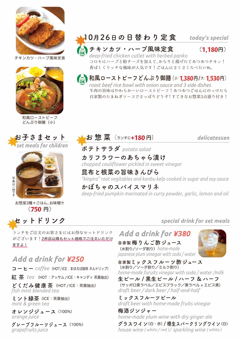 いや本日も外は雨天の東京三鷹は日曜日…さすがに三鷹市西部総合防災訓練も中止にハロウィンイベントもままならず?さらにワタクシ朝の自転車通勤はワンチャンポンチョなしでも出勤できる?とか思いきや(苦笑)今日のお昼ごはんにお持ち帰り日替わりですよ。