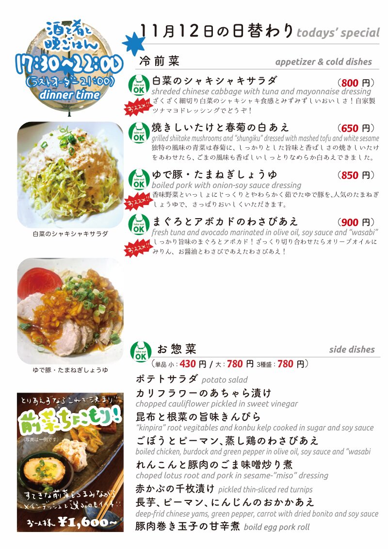 今夜もおいしいごはんは日替わりに、もちろんお持ち帰りも!