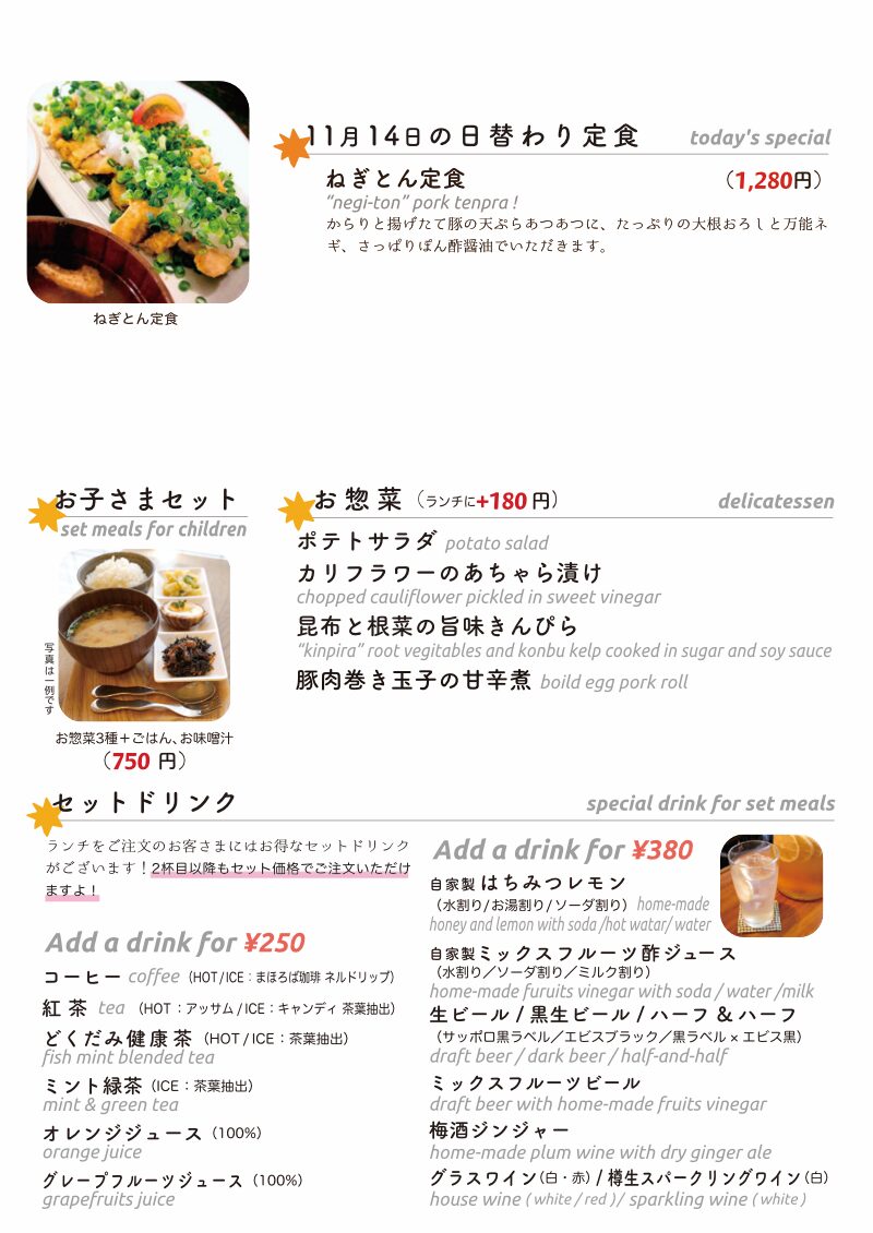 と言うわけで、とりあえず今夜は今だご予約ナッシングですからね(苦笑)いや、ご来店し放題でゴザイマスよと、えぇ、しかも今週末はこの秋最後!「さんまのたづな揚げ」に当店きってのB級メニューは「ポテサラちくわ天」がダブルでメニューイン!…あぁ、これを両方注文できるってめったにないよね?と(笑)、さらに毎度チョー人気の「イカワタチャーハン」も登場!で、いや、なにげに今週末は季節のメニューに人気のメニューをはじめとして和食寄りのラインナップ!…季節の日本酒「ひやおろし」なんかにあわせてお召し上がりも、またひとつの秋のお楽しみでゴザイマスからね〜と、えぇ、よろしかったらご予約はお電話(0422-45-3331)もぜひ〜★なんて申し上げつつ、金曜日もお昼時。