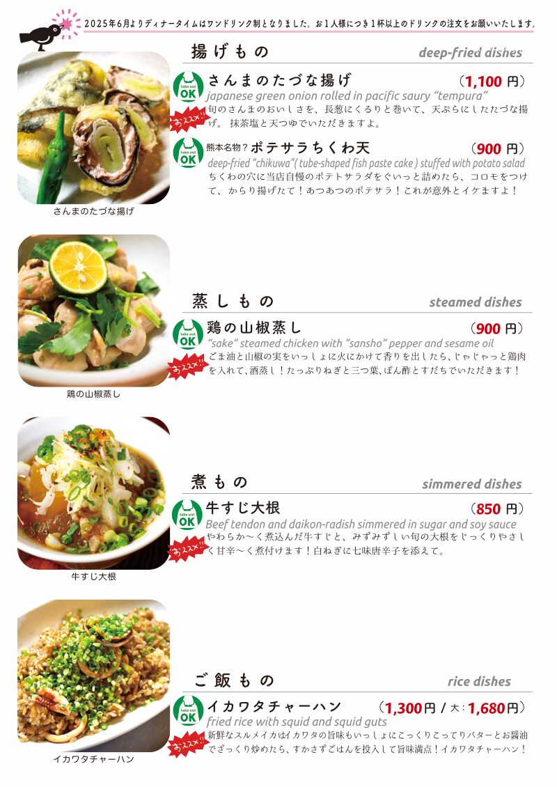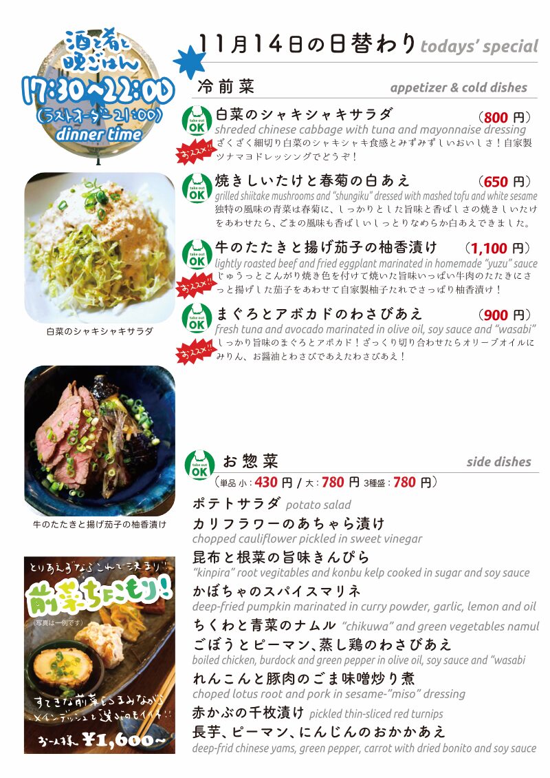 今夜の日替わりにお持ち帰りも!