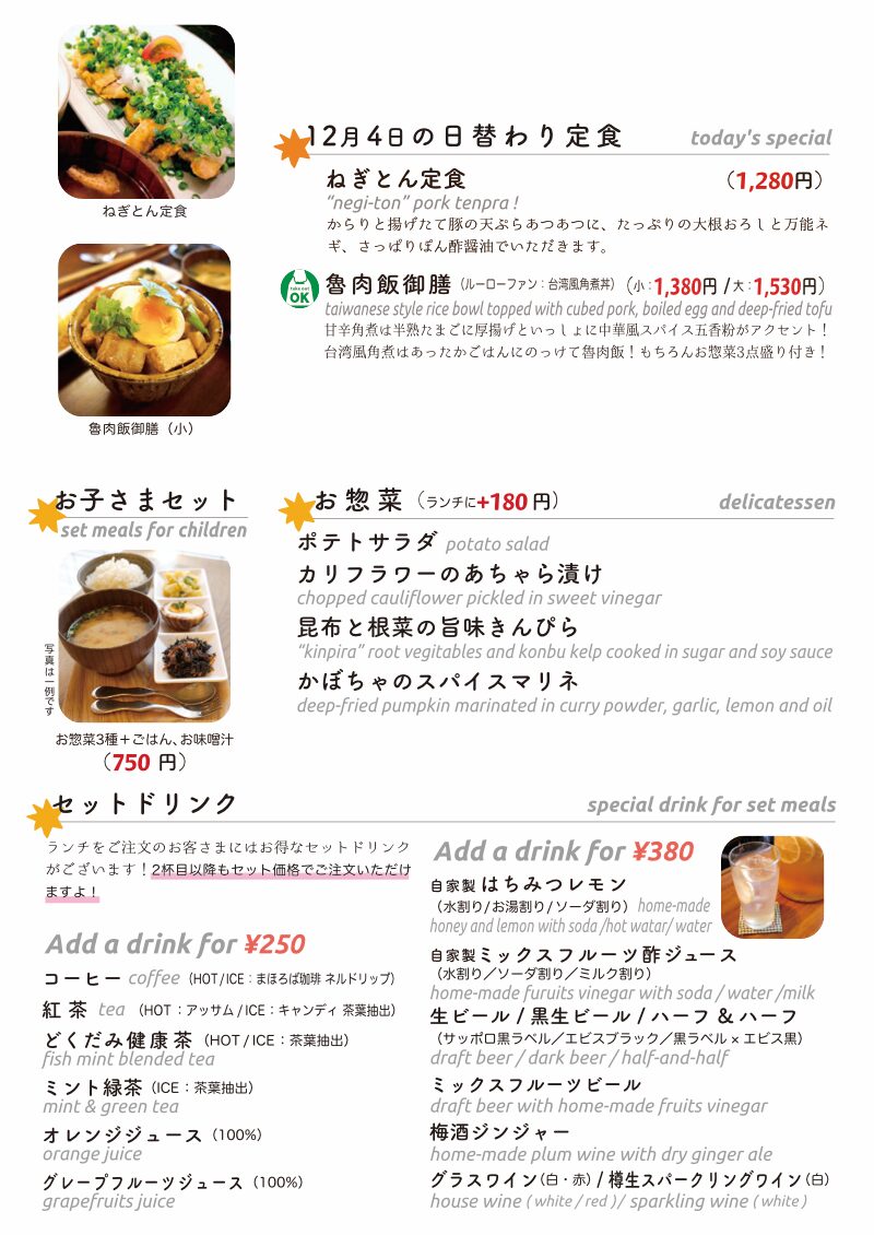 からり秋晴れ続いて、いやさすがに今日は寒いですねとワタクシデニムの下はこの冬初タイツ出自転車通勤…って、昨夜深夜はお待たせでした!とようやくクリスマスディナーの詳細アップ!(もうご覧になりましたか?)今日のお昼ごはんにお持ち帰り日替わりですよ。