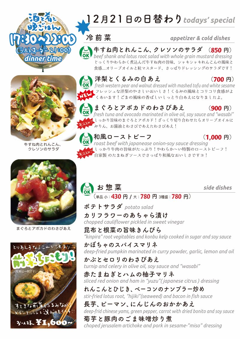 今夜もおいしいごはんは日替わりに、もちろんお持ち帰りも!
