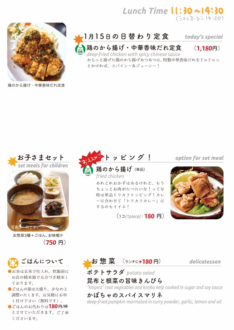 いいお天気が続いて東京三鷹は木曜日…って、1月もなにげに前半戦がおしまいで、今年もなんだかんだ早いですねぇとか思いつつ、当店経理担当ワタクシ正気にもどれば1月はあれこれ仕事が多いんだった!(苦笑)今日のお昼ごはんにお持ち帰り日替わりですよ。