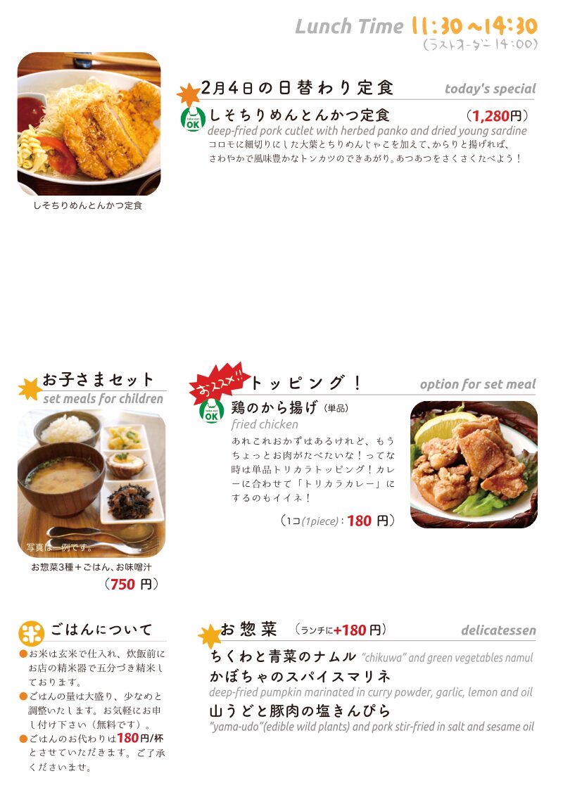 さてさて今日もいいお天気の東京三鷹は立春の水曜日…寒さもゆるんで10℃越え予想も、しかし週間天気予報を見てみると、こりゃなんですか?ちょっとヤバくない??(苦笑…日曜の選挙投票日も!)今日のお昼ごはんにお持ち帰り日替わりですよ。