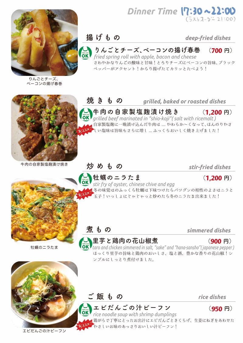 今夜もおいしいごはんは日替わりに、もちろんお持ち帰りも!