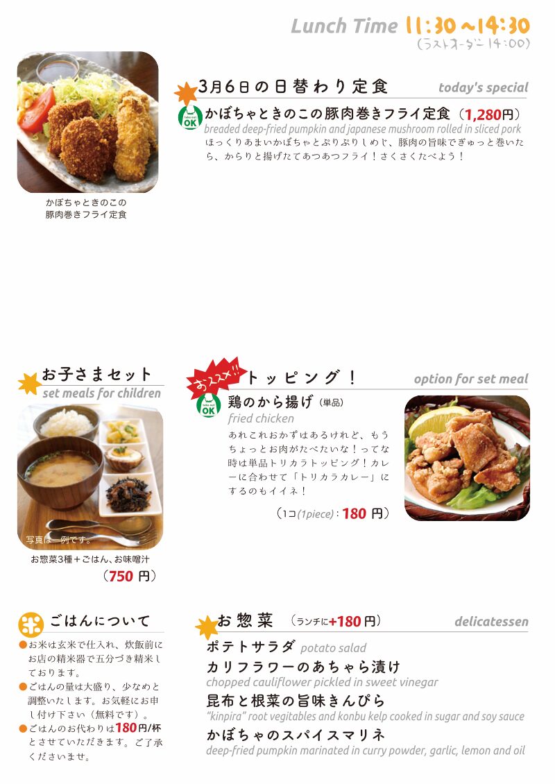 今日のお昼ごはんにお持ち帰り日替わりですよ。