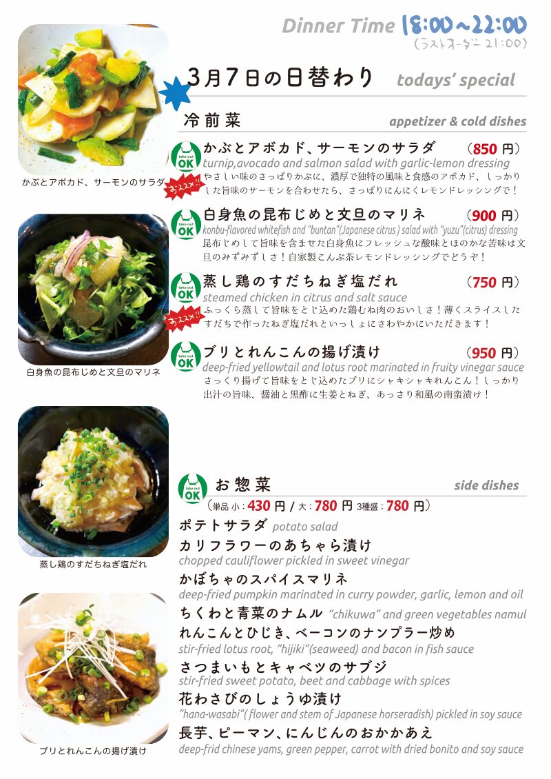 今夜もおいしいごはんは日替わりに、もちろんお持ち帰りも!