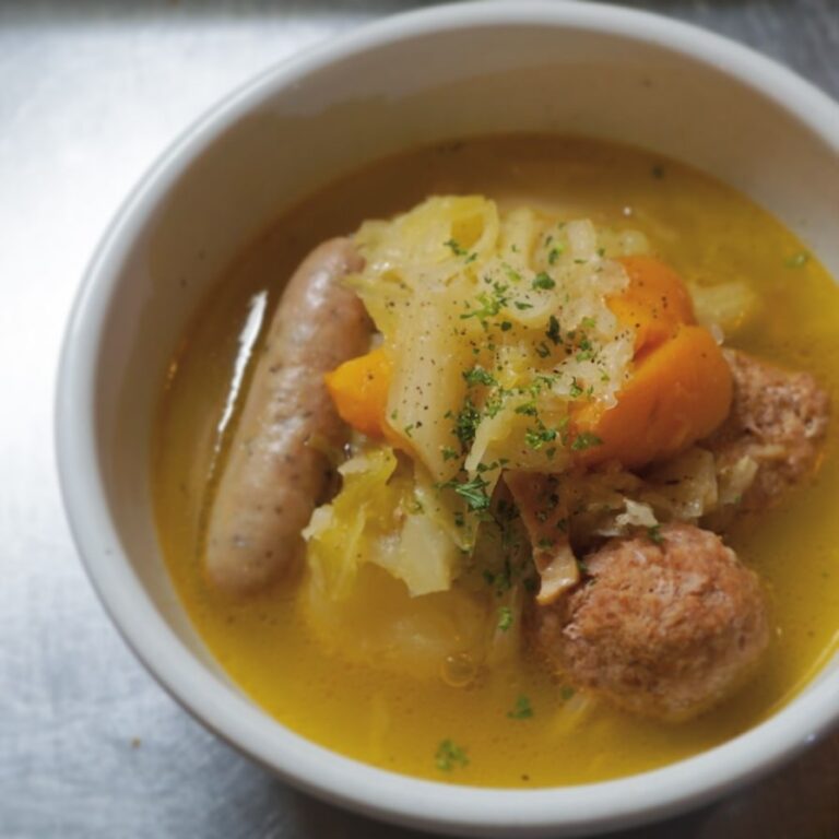 今日は暑さもひと段落…暑くて冷たいものばかり食べていたお腹に、やさし〜い、あたたか〜い、思いやりはいかがですか? 肉だんごとハーブソーセージ・野菜のポトフ風は、キャベツに人参、ジャガイモなどたっぷり野菜に肉だんごとハーブソーセージの旨みをあわせるようにコトコト煮込んだ、やさしい味わいのスープ煮込み。疲れた胃腸に癒しを!ごはんにもワインにも合う一品、召し上がれ〜(麻)
