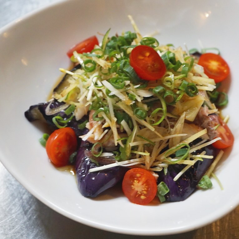 ワタシって、茄子好きだったんだ…!と、今更ながらに気づいたんですが、新メニュー「干物と揚げ茄子のさっぱりサラダ」は高知の郷土料理、茄子のたたきをリトスタ風に仕立てた一品です。 ぷりぷりの茄子は素揚げして、鯵の干物を焼いてほぐして、薬味は生姜・茗荷・にんにく・すだちをたっぷりと。すだちと柚子果汁が効いた自家製ぽん酢とあわせたら、干物の旨みを纏った揚げ茄子のサラダができあがりました!店長ミヤザキは毎日でも食べたい、秋のサラダできてますよー(麻)