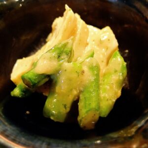 あー、昼下がり、店長ミヤザキが賄いをいただいておりますその側、大きな擂り鉢からいい匂い(笑)…これなに?と、しゃぶしゃぶサラダのごまだれだよと、えぇ、ごまの香ばしさににんにくのおいしそうな匂い…これに酢とかレモン汁とかごま油とかetc…で、自家製ごまだれドレッシング…あー、そりゃおいしいはずだわな!(笑)よろしければ今夜はぜひ!(お)