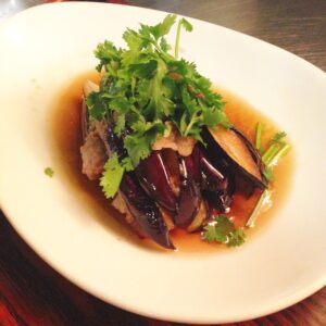 さてさて、昨日からの新メニューは…実はワタクシドモオーナー夫婦はわりに自宅てよく作ってくれてた一品ですよと、えぇ、薄く切った茄子と豚バラ肉をじゃじゃっと酒蒸したら、おなじみベトナム風たれとパクチーをかけていただきます!ざっくり夏の蒸しメニュー!ぜひ!(お)