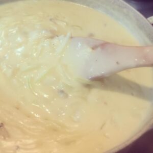 明日のためのホワイトソースができました!シーフードとほうれん…