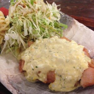 さらに今夜のちょっと気の利いた(?)前菜は「いちごと柿、くるみの白あえ」!さわやかないちごの酸味にしっかり柿の甘味、くるみの風味と食感がしっとりなめらかごま風味、デザートみたいな白あえですよ!(お)