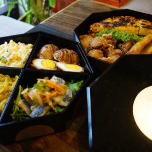 その思い出の味を念頭に置きつつ、家庭的なポピュラーなスタイルのポッサムを作ってみました。人参の茎、桂皮、ローリエ、ネギの青いところ、ニンニクなどと一緒にじっくり茹でた豚バラの塊肉。辛味噌サムジャンは自家製のコチュジャンと田舎味噌を合わせて。ムチェ(大根キムチ)もちろん自家製。浅漬けならキムチも気軽です。これらをサニーレタスでくるっと巻いて食べるわけです…ああ、お持ち帰りしたいな。余るかな?(麻)